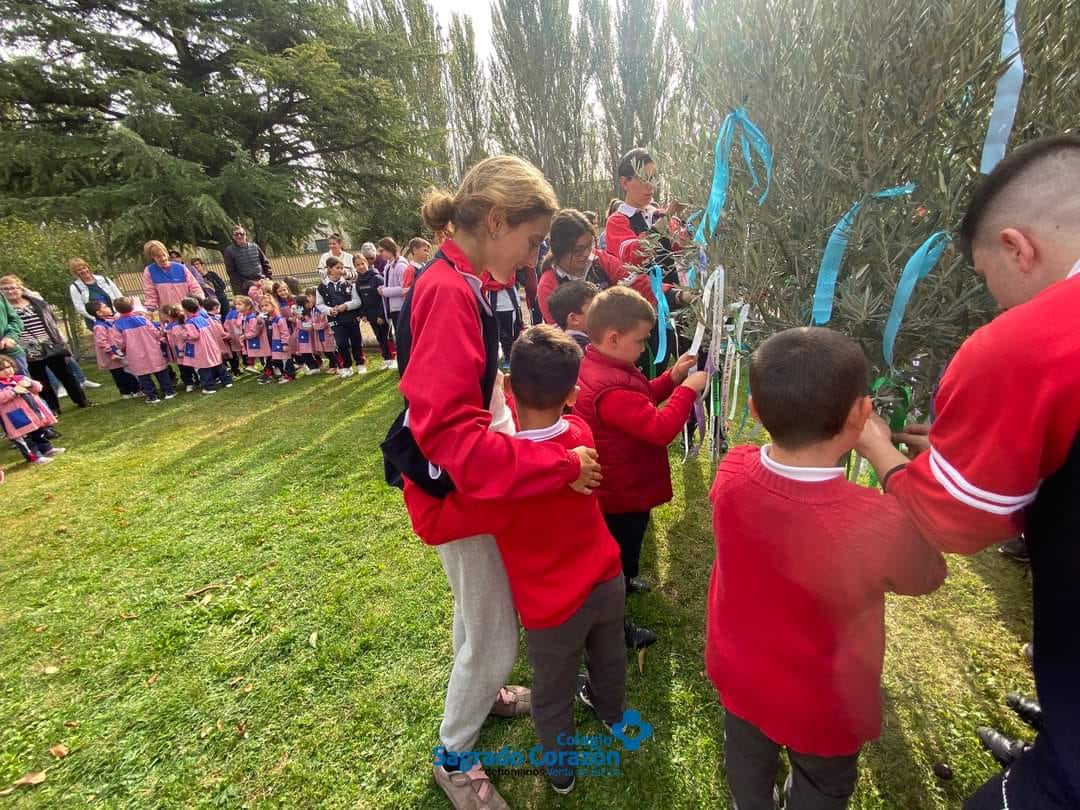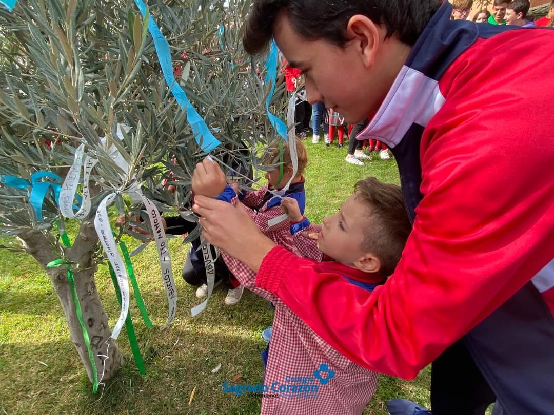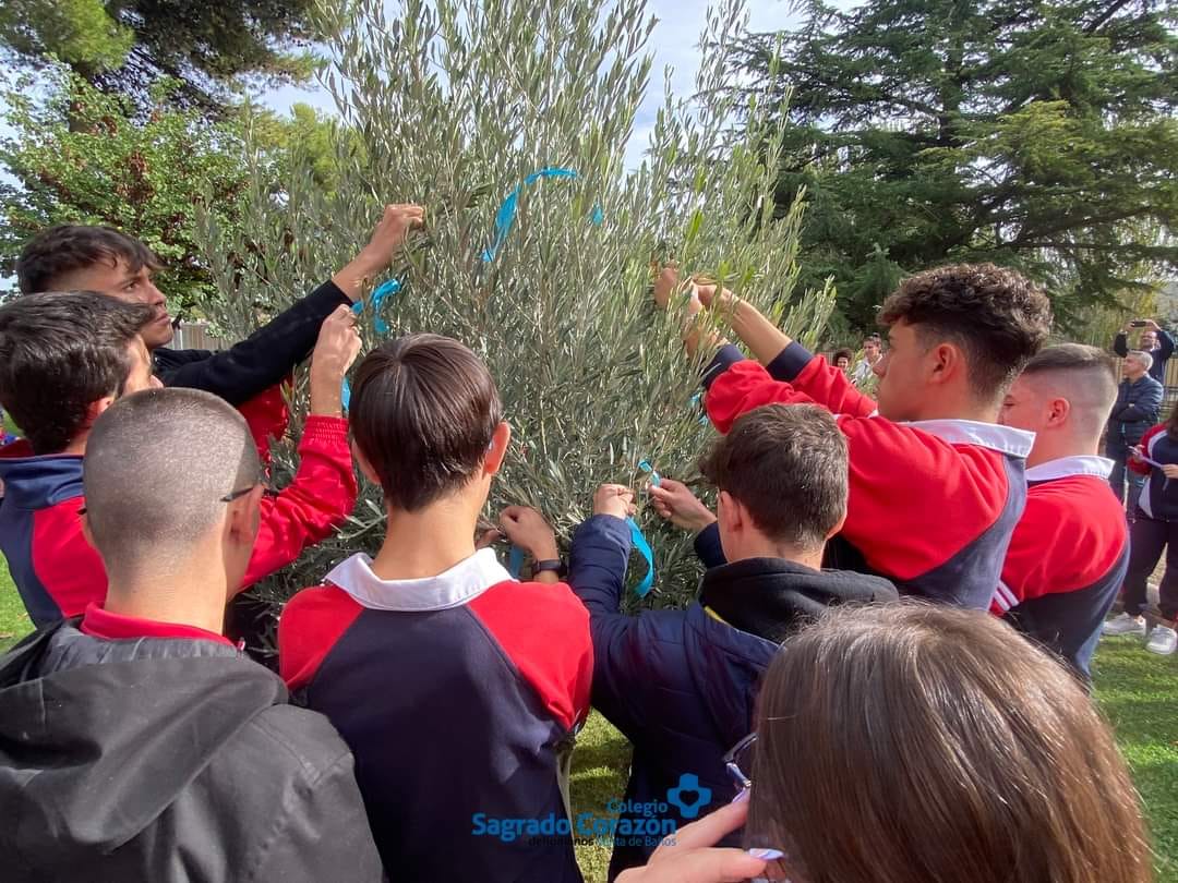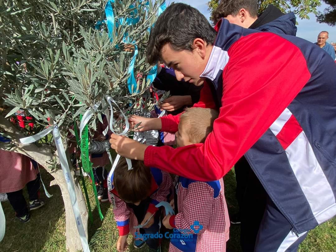 Alumnos, familiares y equipo del Colegio Sagrado Corazón de Venta de Baños hemos asistido a la Celebración del Olivo. Este árbol homenajea a todos los seres queridos de nuestras familias