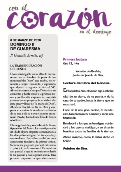 Compartimos la Hoja Dominical de la Delegación de Pastoral Vocacional en la que podrán encontrar las reflexiones del P. Gonzalo Arnáiz, scj., y las lecturas para este domingo II de Cuaresma.