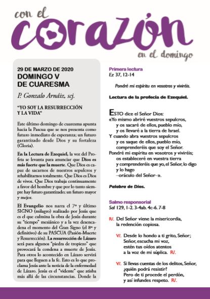 Compartimos la Hoja Dominical de la Delegación de Pastoral Vocacional en la que podrán encontrar las reflexiones del P. Gonzalo Arnáiz, scj., y las lecturas para este domingo V de Cuaresma.