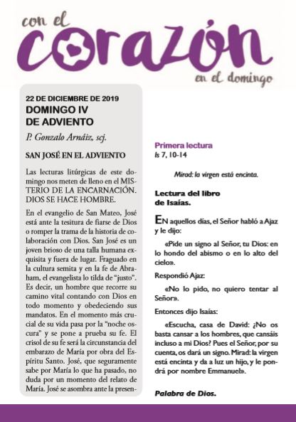 Compartimos la Hoja Dominical de la Delegación de Pastoral Vocacional en la que podrán encontrar las reflexiones del P. Gonzalo Arnáiz, scj., y las lecturas para este domingo IV de Adviento.
