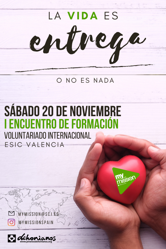 El sábado 20 de noviembre tendrá lugar en ESIC Valencia, la I FORMACIÓN MISIONERA del año 2021/2022 organizada por el equipo My Mission España bajo el lema «LA VIDA ES ENTREGA O NO ES NADA»