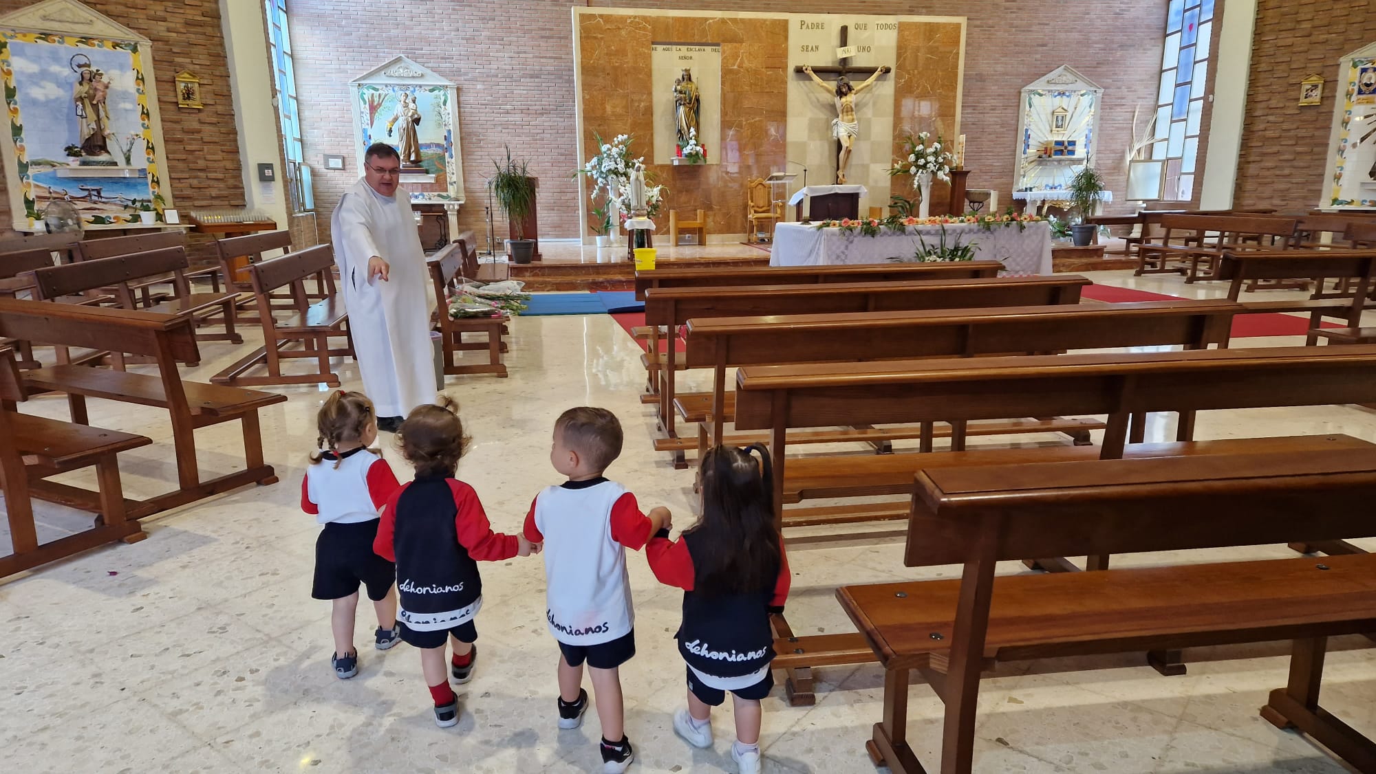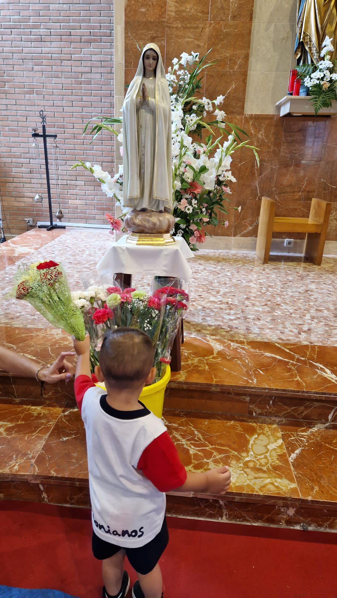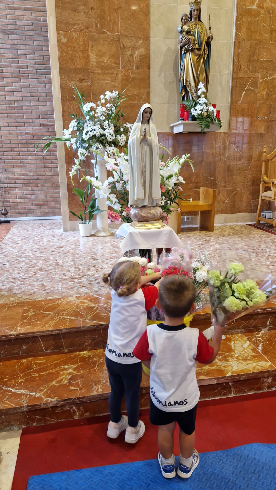 Los alumnos de la escuela de educación infantil “Portada Alta” de Málaga han tenido hoy una hermosa ofrenda floral a la Virgen con motivo del mes de mayo y la festividad de la Virgen de Fátima